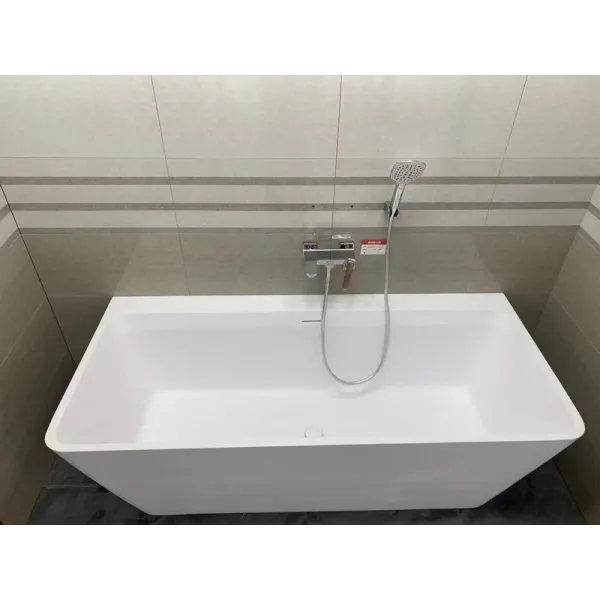 Поверхность ванны приятная на ощупь и не холодная благодаря низкому уровню теплопроводности, что делает процесс эксплуатации очень приятным.