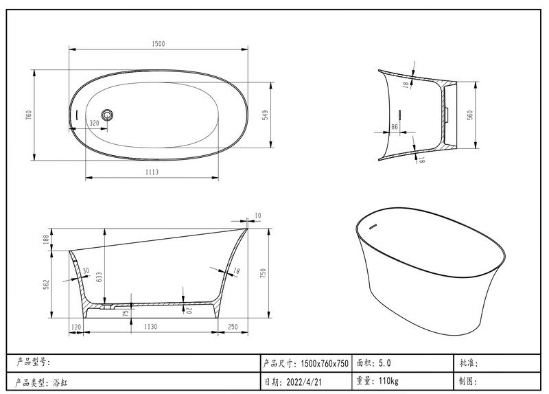 Ванна из искусственного камня Timo Kiara KIARA1500 150x76 см белый