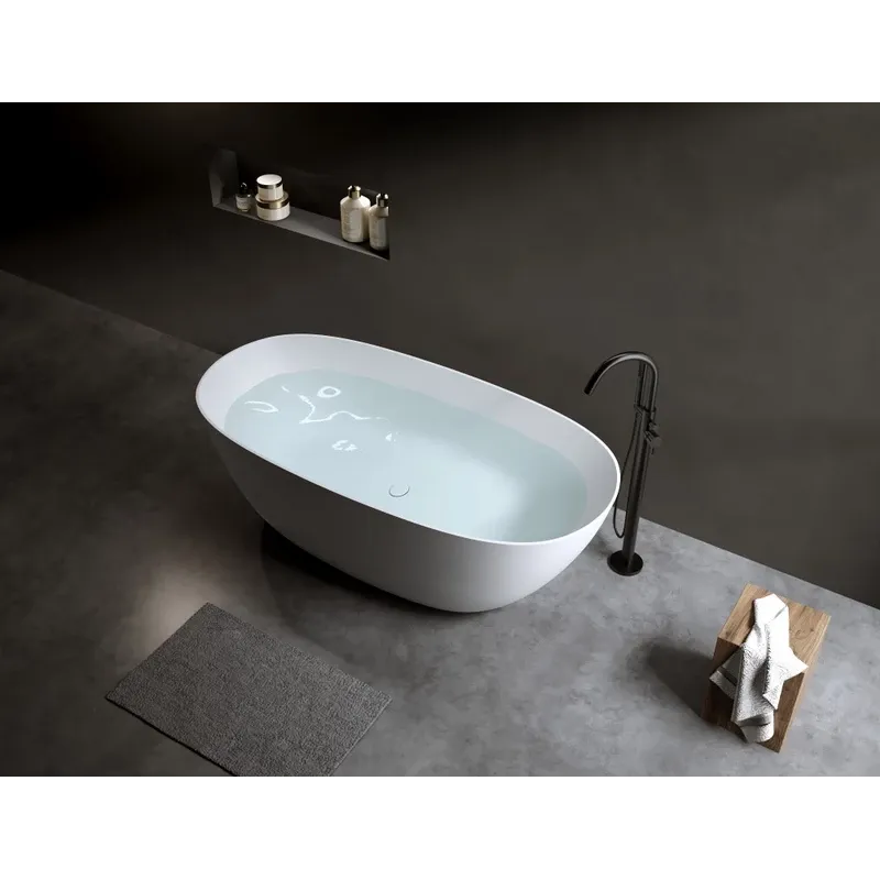 Поверхность ванны приятная на ощупь и не холодная благодаря низкому уровню теплопроводности, что делает процесс эксплуатации очень приятным.