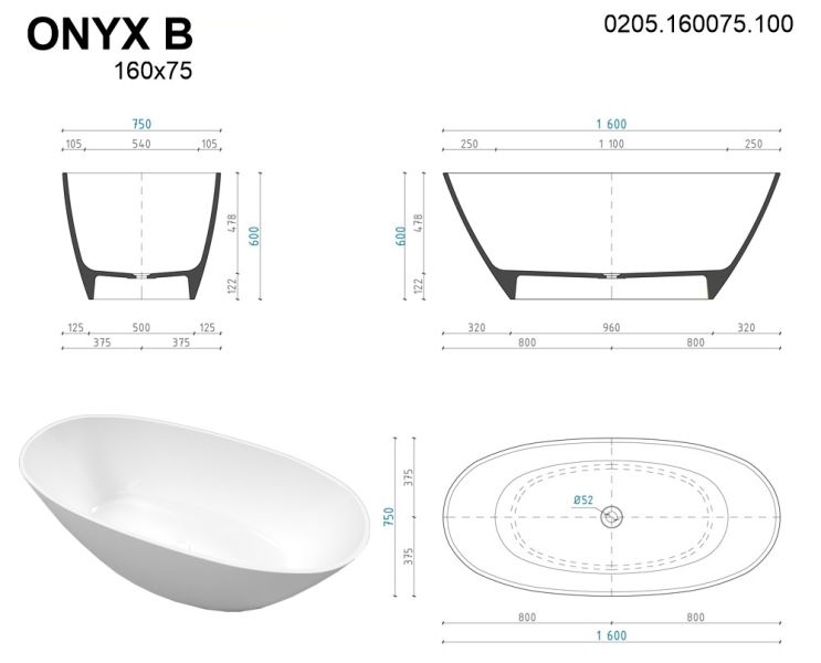 Для создания ванны ONYX B используются материалы премиум класса, качество которых соответствует высочайшим стандартам.