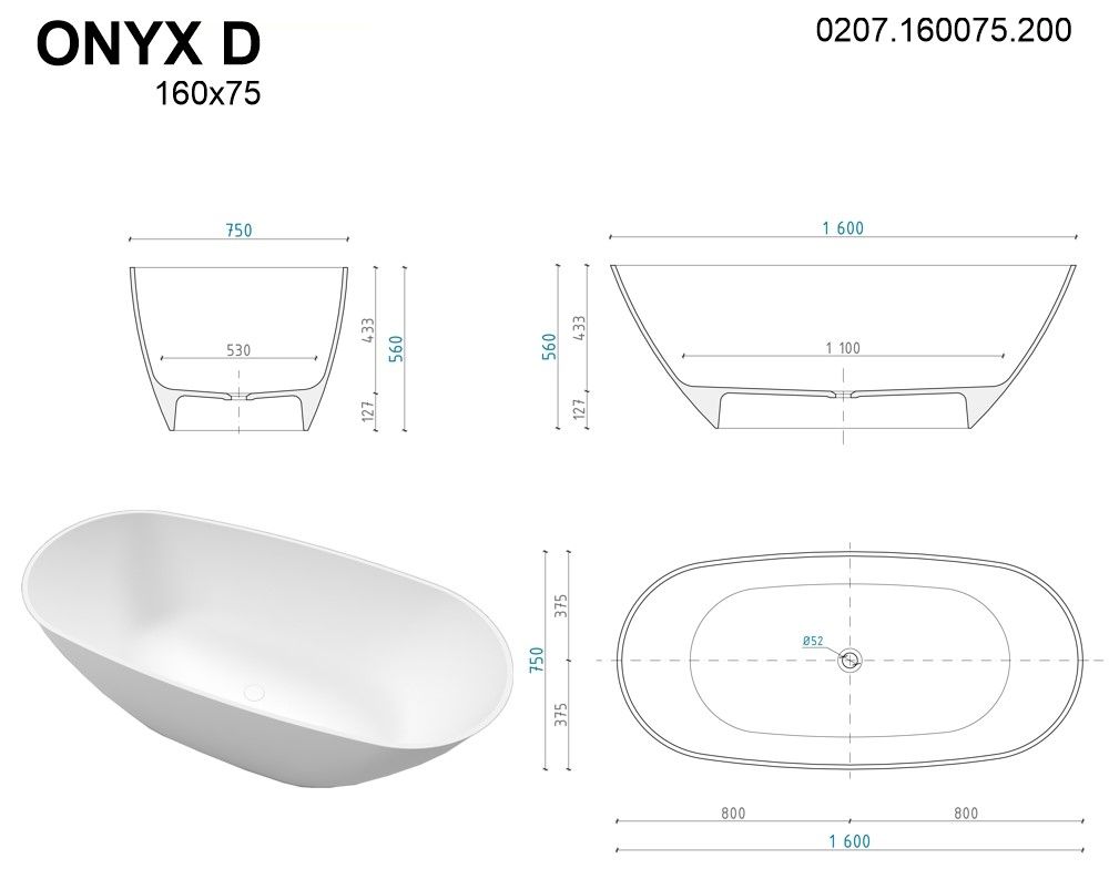Для создания ванны ONYX D используются материалы премиум класса, качество которых соответствует высочайшим стандартам.