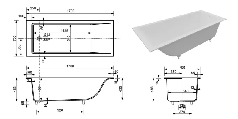 Ванна из литьевого мрамора Эстет Delta 170А 170x70 ФР-00017889 белая
