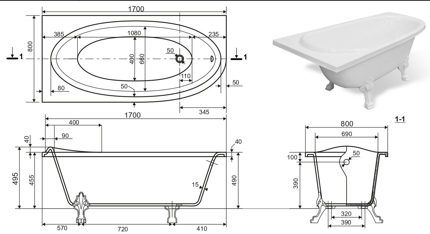 Ванна из литьевого мрамора Эстет Венеция ФР-00001848 Л 170x80см белый купить