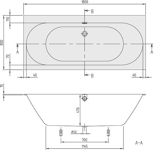 Ванна квариловая OBERON 2.0 180*80 UBQ180OBR2DV-01