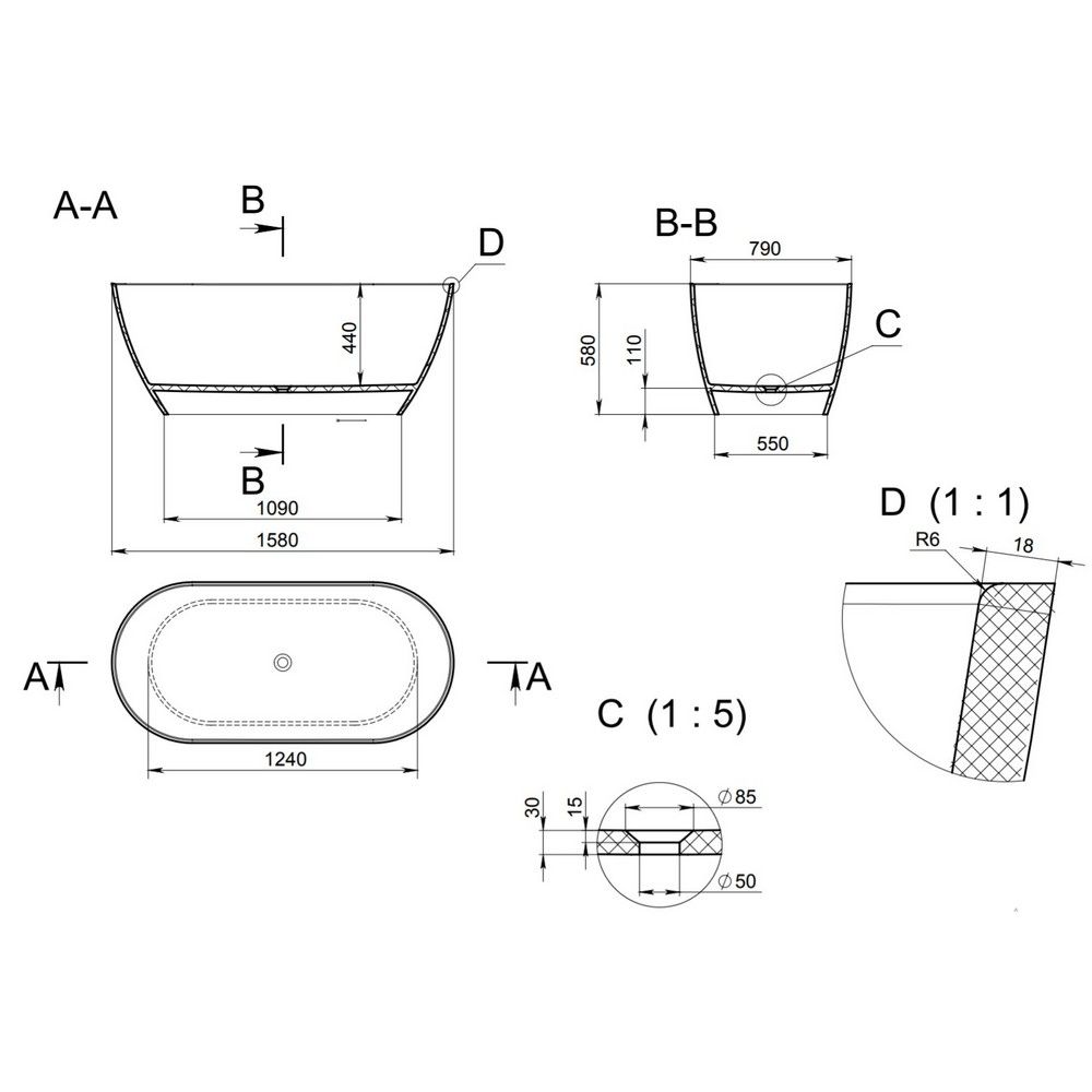Ванна отдельностоящая Holbi Venus NEW 158x79см белый/цветной матовый 1.01.002.11.2 купить