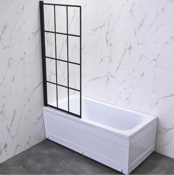 Шторка на ванну Veconi PL77L70 x 150 см распашная, стекло прозрачное, черный матовый, левая, PL77L-70-01-C6