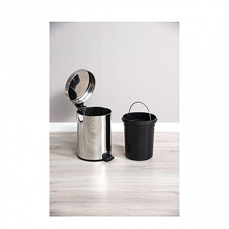Ведро для мусора Aquanet 8074 (12 литров) имеет удобную педальную систему открывания крышки. Благодаря ей, мусор можно выбрасывать, не притрагиваясь к крышке руками. Это особенно удобно, когда руки испачкались в процессе приготовления пищи. Ведро имеет удобную крышку, которая надежно блокирует все запахи, поэтому мусор не обязательно выбрасывать сразу, если, допустим, почистили рыбу - неприятный запах не будет портить жизнь. Крышка мягко открывается за счет удобного механизма, достаточно нажать на педаль ногой. Основа, в которую устанавливается ведро, выполнена из нержавеющей стали, так что повреждения ей не страшны. К тому же, за счет веса, она довольно устойчива. Пользоваться такой урной довольно удобно, а ее цилиндрическая форма и хромированный облик вносит в интерьер некую футуристичность. Для большой семьи мусорное ведро, рассчитанное на 12 литров, вполне подойдет.
