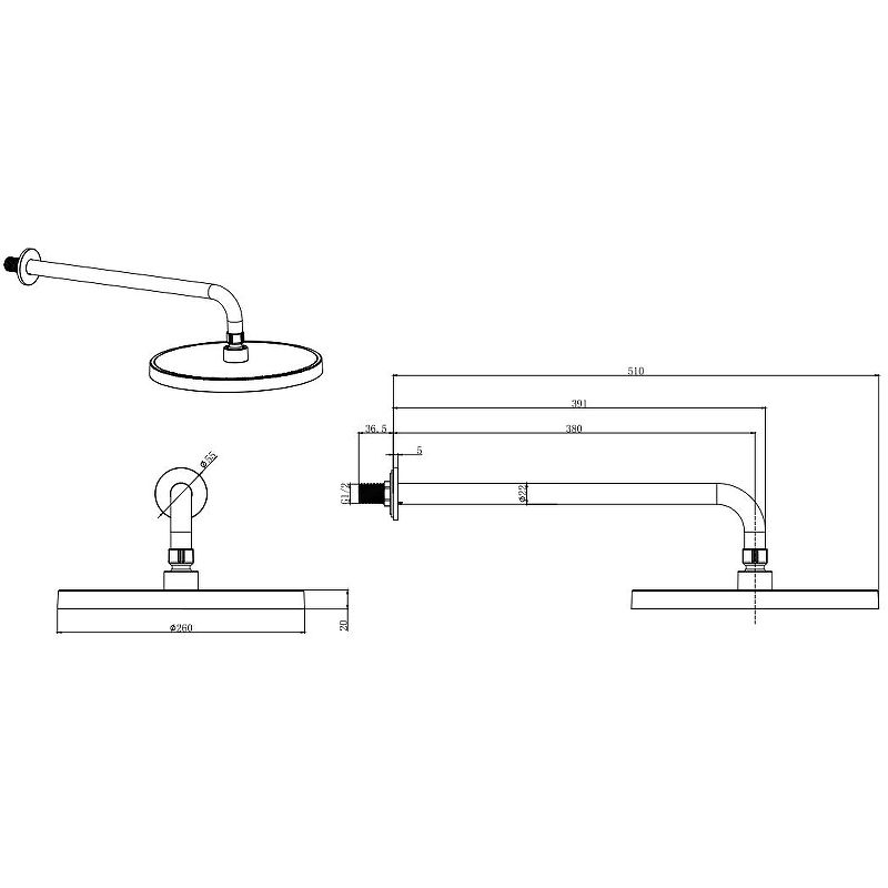 Диаметр верхнего душа: 260 мм.