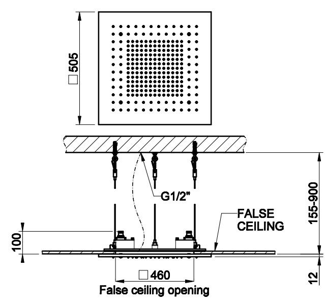 Верхний душ Gessi Minimali, скрытая часть, 500x500 мм с функцией тропического ливня и цветом Mir... Подробнее