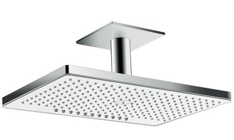 Верхний душ Hansgrohe Rainmaker Select 460 24004400, 466 x 300 мм, 2 режима струи, с держателем, белый/хромОписание:состоит из: верхний душ, потолочное подсоединение, розетка
