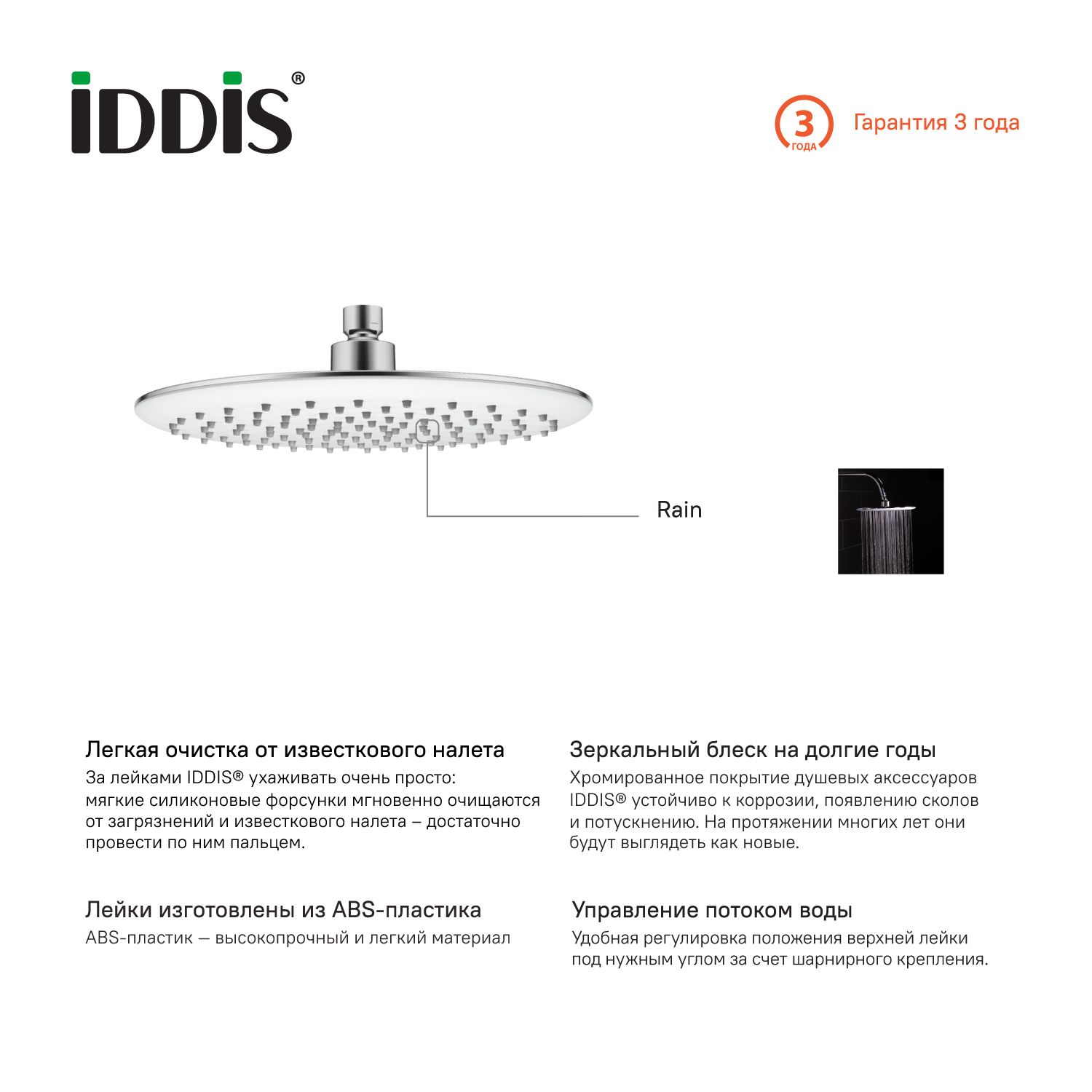 Верхний душ IDDIS 26см хром/белый 200SWRPi64