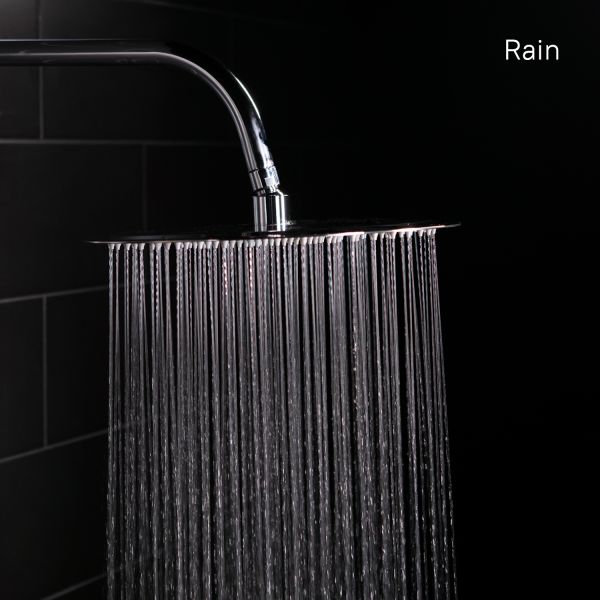 Душевая насадка верхняя, круглая, материал нержавеющая сталь (тонкая), диаметр 300 мм, темно-серые форсунки.