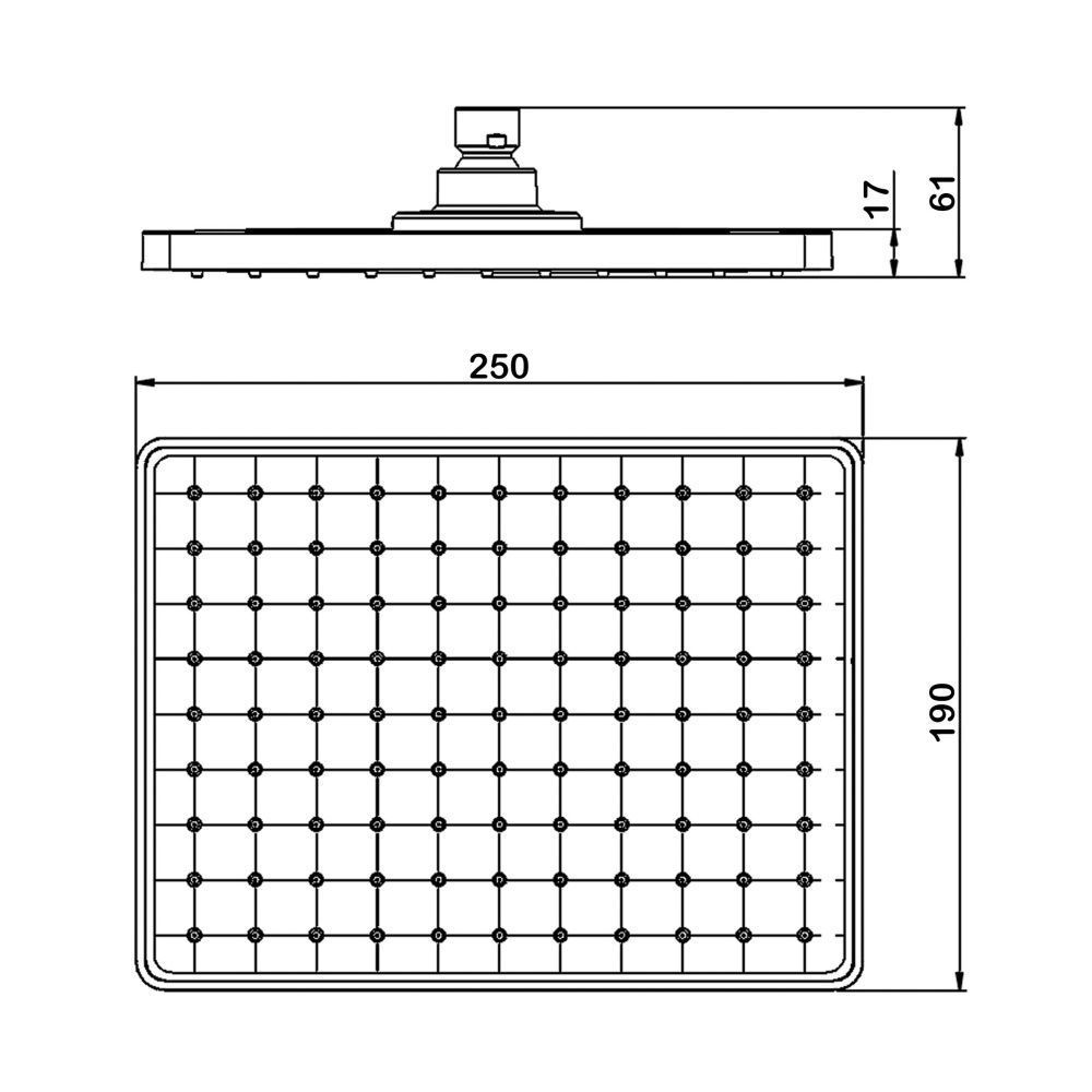 Верхняя душевая насадка Хромированная лицевая поверхность.Система Air-In.Режим PULSE.Латунный шарнирный крепеж. Размер - 250х190 мм.Цвет: черный.