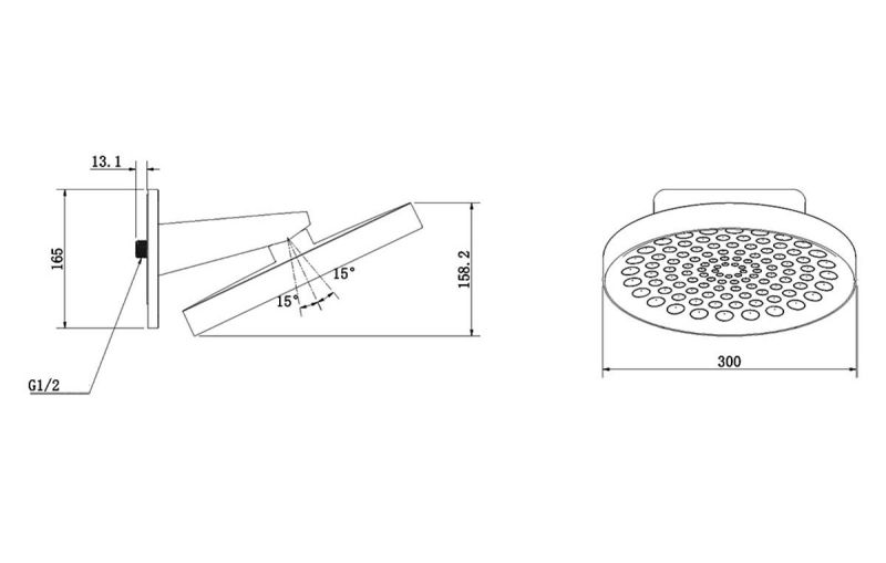 • Форма верхнего душа: круглая.