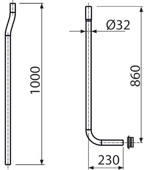 • Водосливная труба Ø32 мм, состоящая из двух частей + прокладка гофрированная