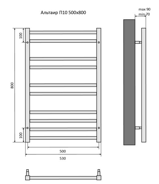 Полотенцесушитель водяной Aquatek (Акватек) Альтаир П10 500х800 мм, подключение нижнее/диагональное, сверхпрочная пищевая нержавеющая сталь AISI 304L, гарантия 10 летХарактеристики:30х30/20х20,без фитинговКомплектация:полотенцесушитель;