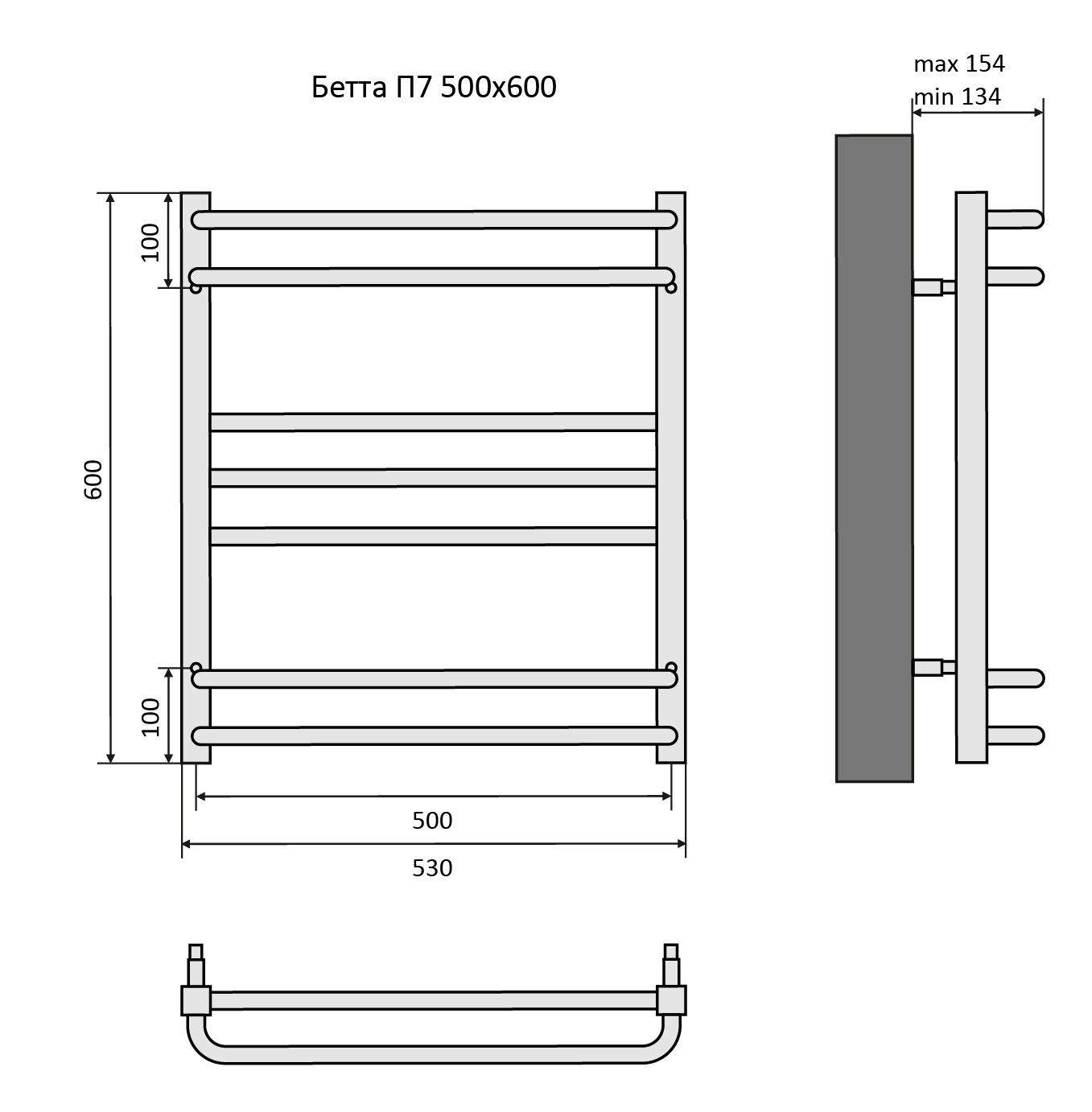 Полотенцесушитель водяной Aquatek (Акватек) Бетта П7 500х600 мм, подключение нижнее/диагональное, сверхпрочная пищевая нержавеющая сталь AISI 304L, гарантия 10 летХарактеристики: 30х30/18, без фитинговКомплектация:полотенцесушитель;