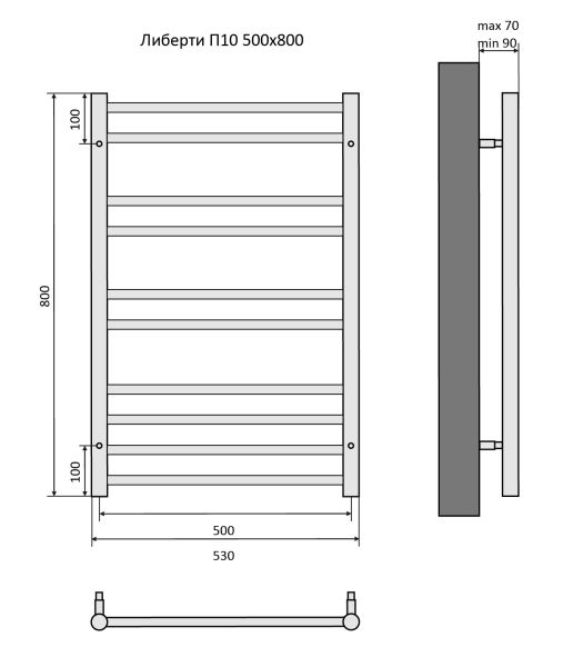 Полотенцесушитель водяной Aquatek (Акватек) Либерти П10 500х800 мм, подключение нижнее/диагональное, сверхпрочная пищевая нержавеющая сталь AISI 304L, гарантия 10 летХарактеристики:32х18,без фитинговКомплектация:полотенцесушитель;