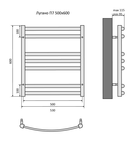 Полотенцесушитель водяной Aquatek (Акватек) Лугано П7 500х600 мм, черный муар, подключение нижнее/диагональное, сверхпрочная пищевая нержавеющая сталь AISI 304L, гарантия 10 летХарактеристики:Dх29,без фитинговКомплектация:полотенцесушитель;