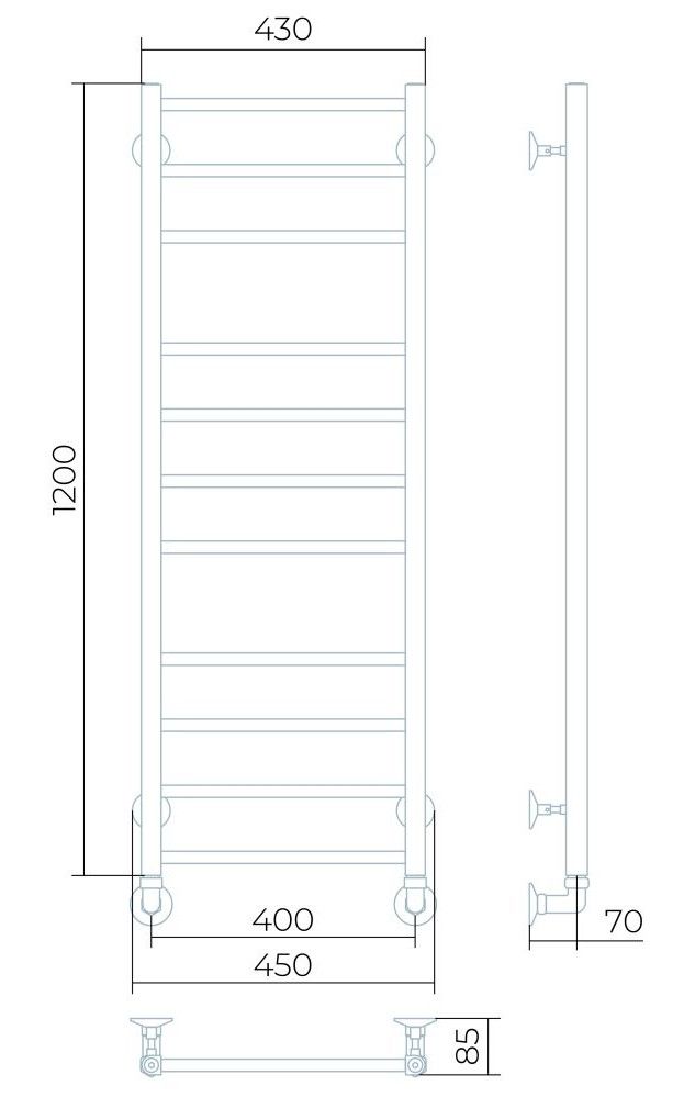 Полотенцесушитель изготовлен из нержавеющей стали — износостойкого и не подверженного коррозии материала, легко выдерживающего агрессивную среду систем отопления.
