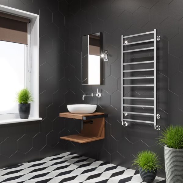 Полотенцесушитель изготовлен из нержавеющей стали — износостойкого и не подверженного коррозии материала, легко выдерживающего агрессивную среду систем отопления.
