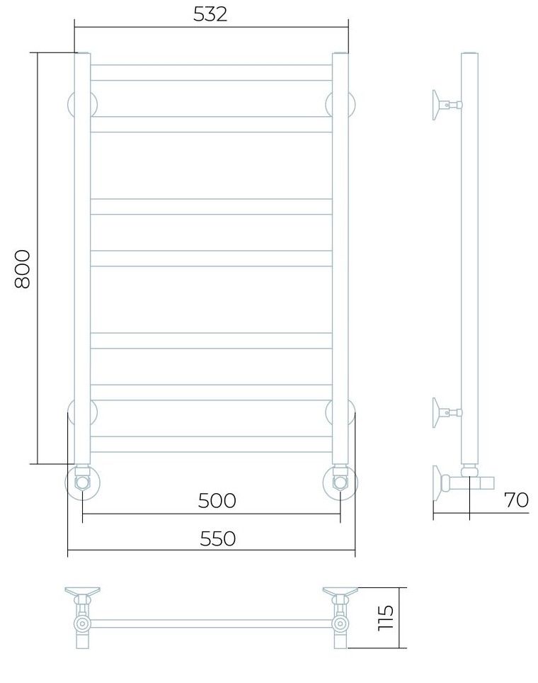 Полотенцесушитель изготовлен из нержавеющей стали — износостойкого и не подверженного коррозии материала, легко выдерживающего агрессивную среду систем отопления.