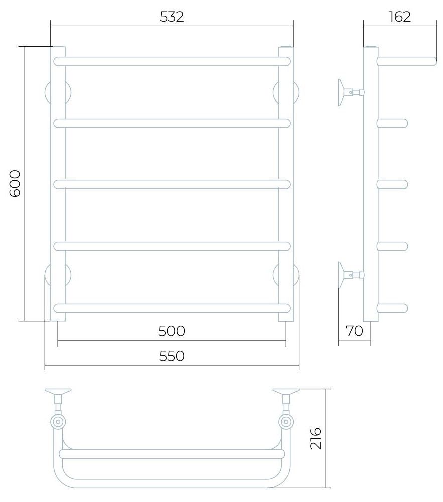 Водяной полотенцесушитель Larusso Стандарт П5 с полкой 50x60см хром 4670078535306