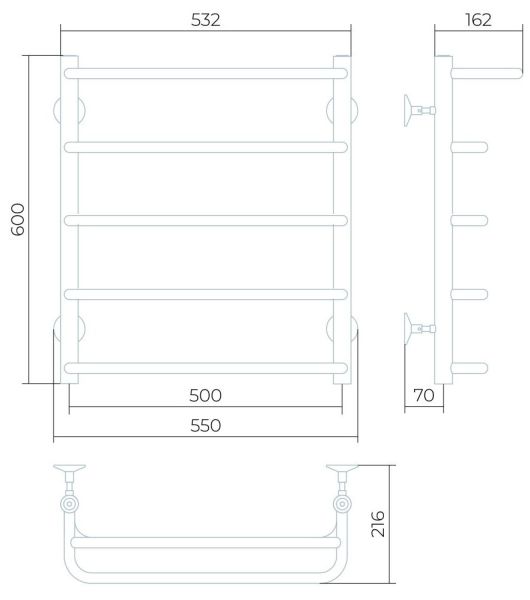 Полотенцесушитель изготовлен из нержавеющей стали — износостойкого и не подверженного коррозии материала, легко выдерживающего агрессивную среду систем отопления.