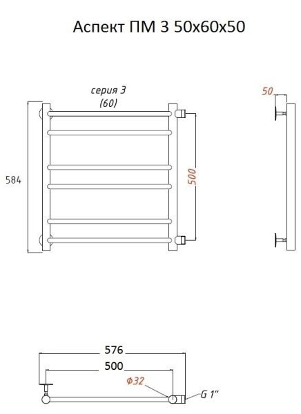 Водяной полотенцесушитель Тругор Аспект ПМ 3 50x60x50см хром Аспект3/ПМ506050
