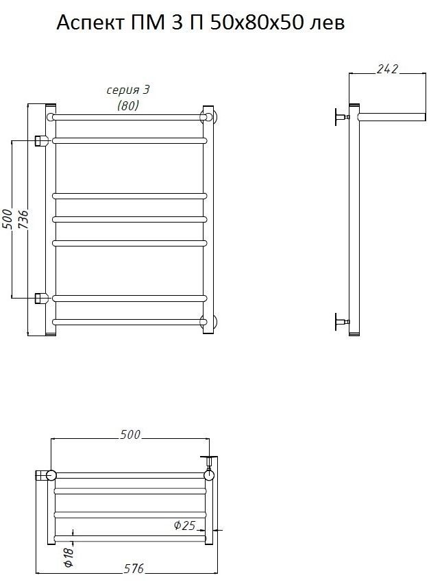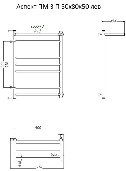 Водяной полотенцесушитель Тругор Аспект ПМ 3 П 50x80x50см с полкой левый хром Аспект3/ПМ508050Плев купить
