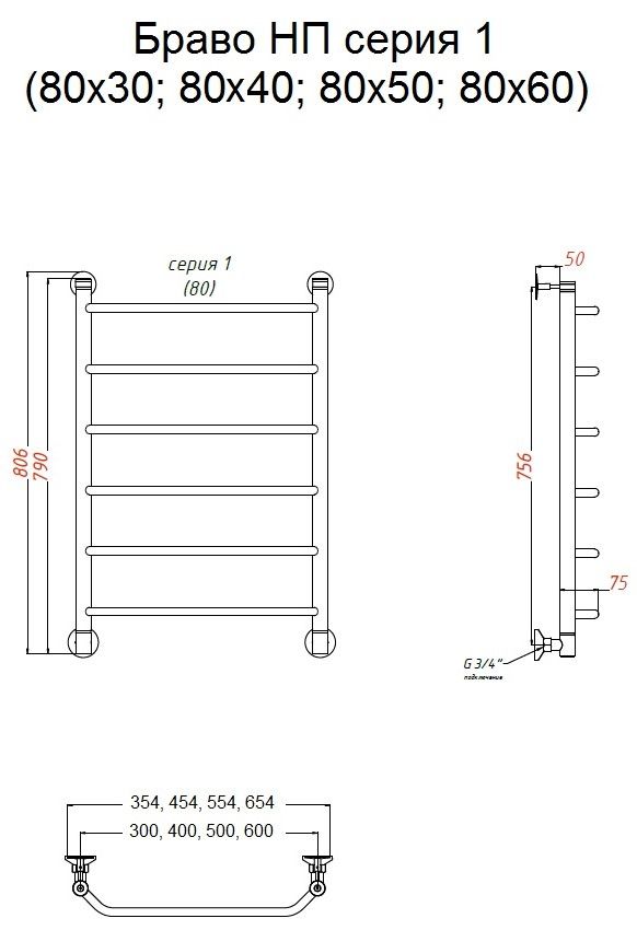 Водяной полотенцесушитель Тругор Браво НП 1 80x60см хром Браво1/нп8060