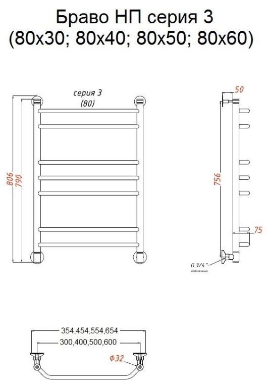 Водяной полотенцесушитель Тругор Браво НП 3 80x50см хром Браво3/НП8050