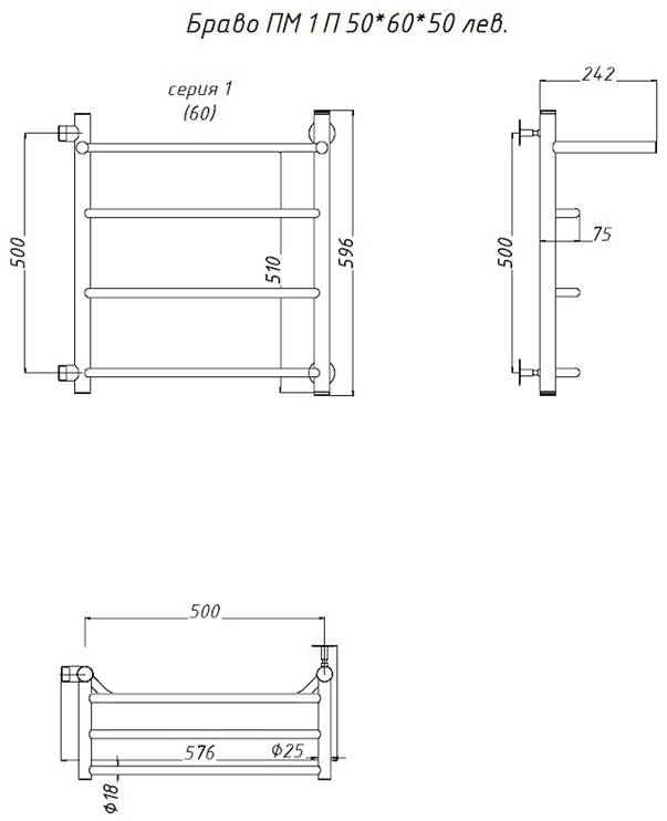 Водяной полотенцесушитель Тругор Браво ПМ 1 П 50x60x50см с полкой левый хром Браво1/ПМ506050Плев купить