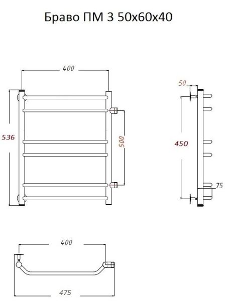 Водяной полотенцесушитель Тругор Браво ПМ 3 50x60x40см хром Браво3/ПМ506040