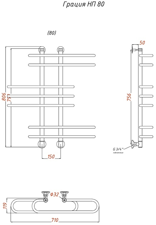 Водяной полотенцесушитель Тругор Грация НП 80x60см хром Грация/нп8060