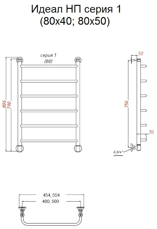 Водяной полотенцесушитель Тругор Идеал НП 1 80x40см хром Идеал1/нп8040