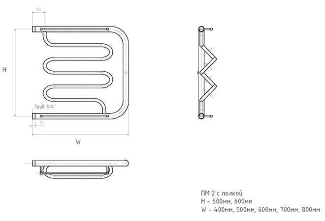 Водяной полотенцесушитель Тругор ПМ2 с полкой 50x60см хром ПМ2/5060П купить