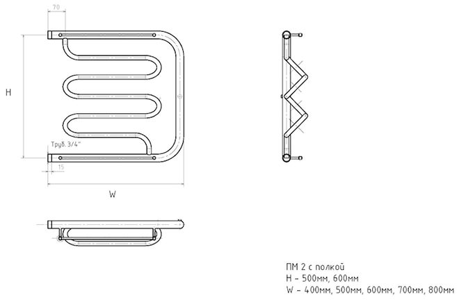 Водяной полотенцесушитель Тругор ПМ2 с полкой 50x80см хром ПМ2/5080П купить