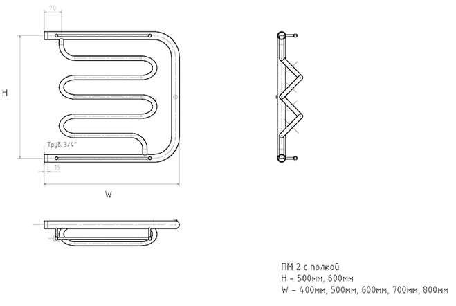 Водяной полотенцесушитель Тругор ПМ2 с полкой 60x60см хром ПМ2/6060П купить
