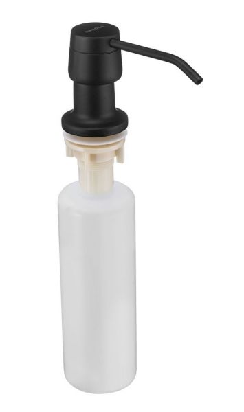 Встраиваемый дозатор для мылаЛатунь, ABS - пластик.Максимальная толщина столешницы 37 ммЦвет: черный.Объем: 330 мл