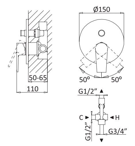 Тип подводки: внутренний (скрытый) монтаж 1/2"
