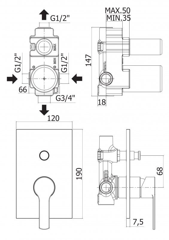 Оснащение: скрытая монтажная часть, дивертор