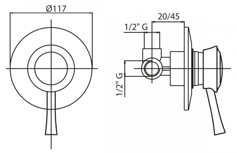- Встраиваемый однорычажный смеситель для душа;