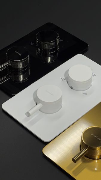 Новый встраиваемый смеситель для душа с термостатом Boheme CELL THERMO. Бокс для комфортного монтажа в стену. Термостат от мирового лидера, французского производителя Vernet. Версия на 2 выхода(верхний душ и ручная лейка) и версия на 3 выхода(верхний душ, ручная лейка и излив на выбор арт.625 и арт. 625/2). Идеально дополняется душевым набором Boheme CELL арт.427 с 2-х режимной верхней лейкой. 8 цветов в наличии.Смеситель для душа Boheme Cell, термостатическийХарактеристики: