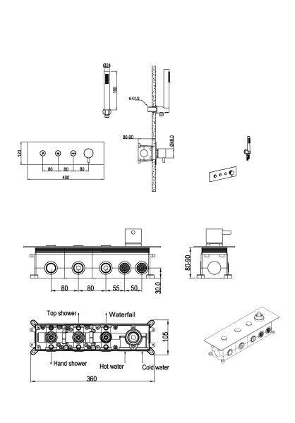 Встраиваемый смеситель для душа Boheme Fusion 130-SYS-CR с ручным душем хром купить