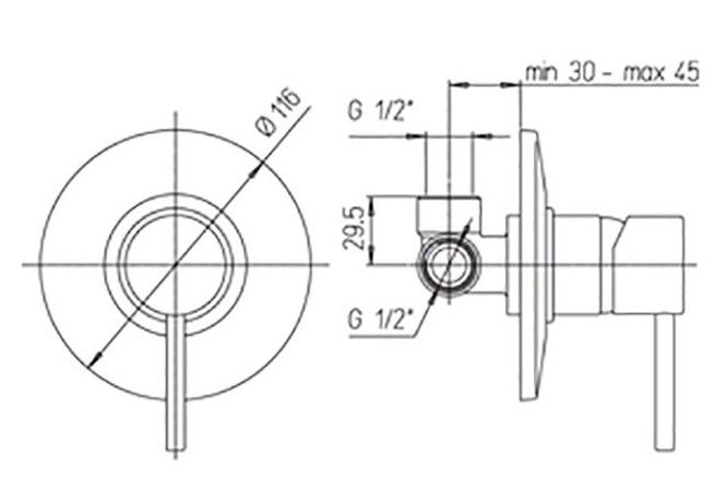 - Встраиваемый монтаж скрывает все соединения и оставляет на виду только рычаг управления, экономя пространство.