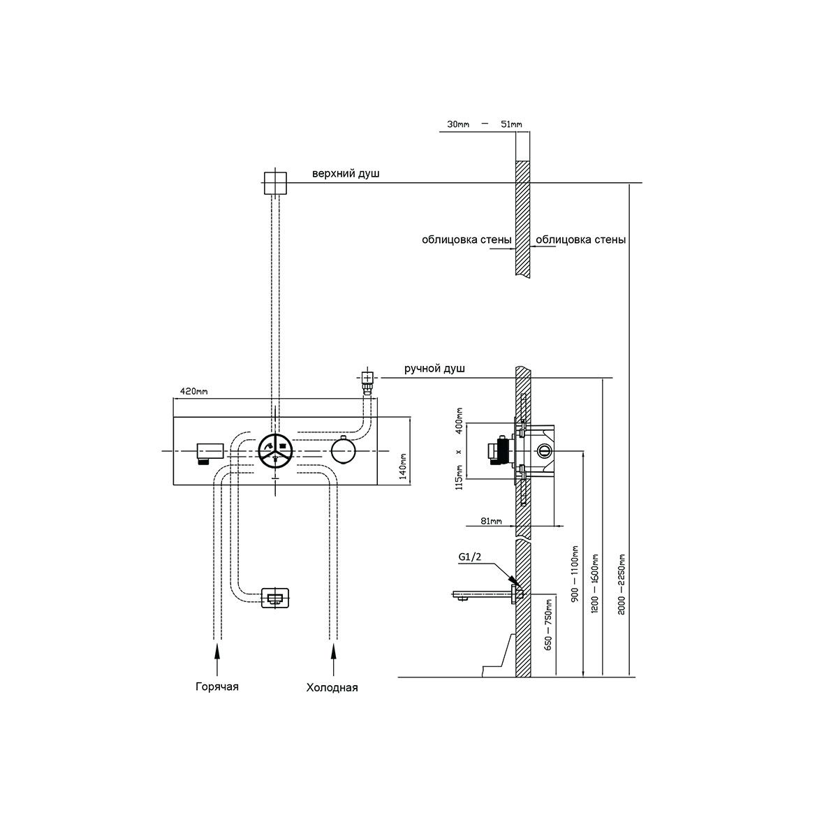 • Стандарт подводки: G 1/2.