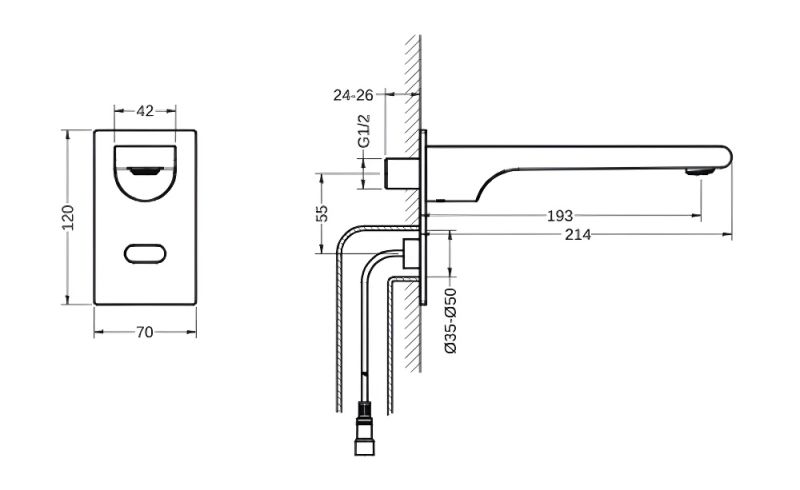 Высота излива (см): 5,5Длина излива (см): 19,3Аэратор: Neoperl, ШвейцарияГибкая подводка в комплектеДлина гибкой подводки (см): 3х50Вращение излива: фиксированныйТип управления: сенсорныйНазначение: для умывальникаКоличество монтажных отверстий: 1 отверстиеПодключение к системе водоснабжения: гибкая подводкаМеханизм: сенсорИсточник питания: от сети 220В или батарей 4×1. 5V AA