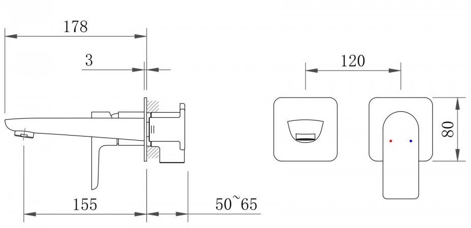Раздельный смеситель из стены, с удобной поворотной ручкой для регулировки температуры выходящей воды. Выполнен в современном стиле, Имеет плоскую, квадратную форму, благодаря чему, максимально удобен в эксплуатации, и имеет удобную эргономику. Встраиваемая система