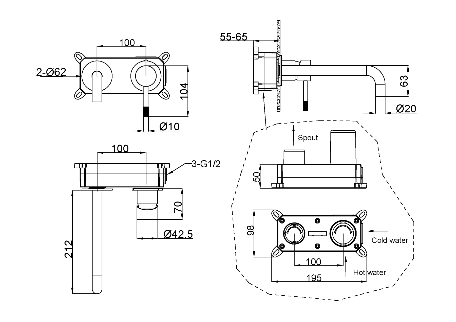 Смеситель Boheme Uno для раковины, встраиваемый,